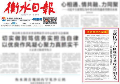 这一创新实践引发主流媒体高度关注,《衡水日报》头版显著位置对“衡水经验”展开深度报道,专题解读“政策+科技”双轮驱动模式破解基层治理难题的示范价值,指出该模式为全省住宅小区公共收益规范化管理提供了可复制的制度框架与技术路径。