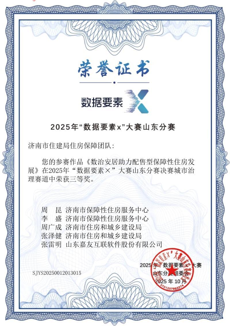 嘉友互联助力济南市住建局荣膺“数据要素×”大赛双奖项,树立城市住房治理数字化标杆
