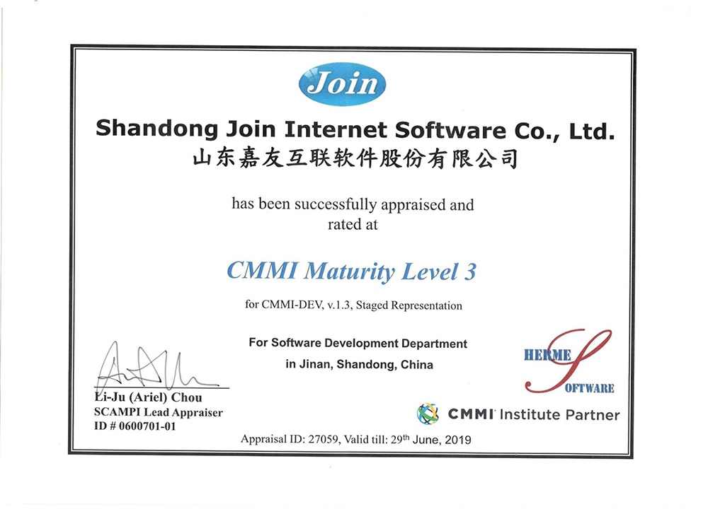 通过访谈和审查,评估小组对公司的CMMI3工作予以了肯定,同时指出了其中的强项、弱项和改进建议。CMMI3级资质认证工作历时近一年,完成发布了符合CMMI3级标准适用于嘉友互联的组织标准体系文件;试点项目按照CMMI3体系要求执行项目过程,为用户提交相关产品,提交各种文档资料,为公司的项目资产积累和过程改进做出了积极的努力;项目组通过理论和实践结合,在试点过程中不断提出问题、发现问题和解决问题,验证目前体系是否适用于公司的项目管理,针对不适用的内容进行改进,达到规范项目组管理,提升项目管理质量,实现组织商业目标的要求。