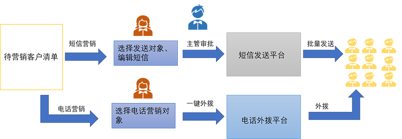 为企业搭建双通信营销平台,短信营销平台和电话营销平台,实现批量短信发送与一键电话外拨功能。